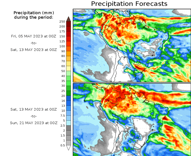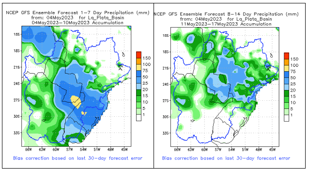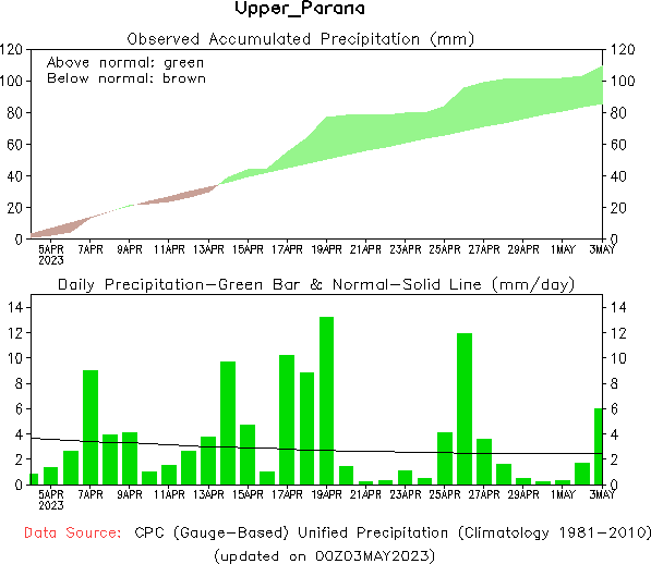 El pronóstico Hidrometeorológico del Centro Climático de referencia indica una tendencia semanal de leve significancia hidrológica en la cuenca de interés para la CHY con dispersión geográfica según sea la fuente consultada. (Ver gráfico Nro. 1).