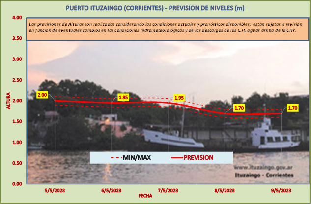 Las previsiones de Alturas son realizadas considerando las condiciones actuales y pronósticos disponibles y están sujetas a revisión en función de eventuales cambios en las condiciones hidrometeorológicas y de las descargas de las C.H. aguas arriba de la CHY.