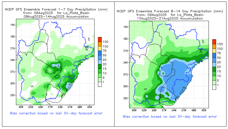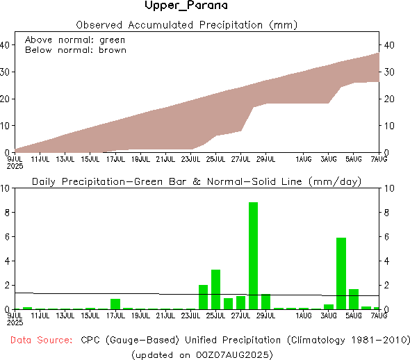 El pronóstico Hidrometeorológico del Centro Climático de referencia indica una tendencia semanal de poca significancia hidrológica en la cuenca de interés para la CHY con dispersión geográfica según sea la fuente consultada. (Ver gráfico Nro. 1).
