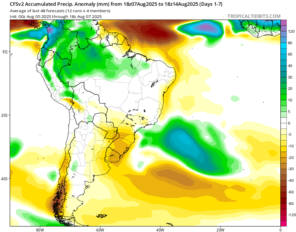 El fenómeno de El Niño-Oscilación del Sur (ENOS) es neutro. El último valor de Niño 3.4 para la semana que finalizó el 8 de junio fue de -0,07 °C. Los valores neutros de ENOS se encuentran entre -0,8 °C y +0,8 °C.
