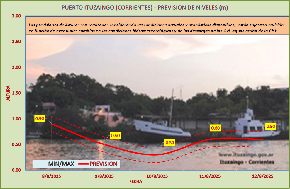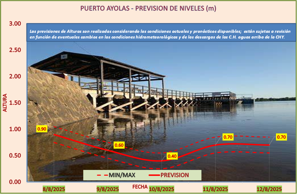 Las previsiones de Alturas son realizadas considerando las condiciones actuales y pronósticos disponibles y están sujetas a revisión en función de eventuales cambios en las condiciones hidrometeorológicas y de las descargas de las C.H. aguas arriba de la CHY.