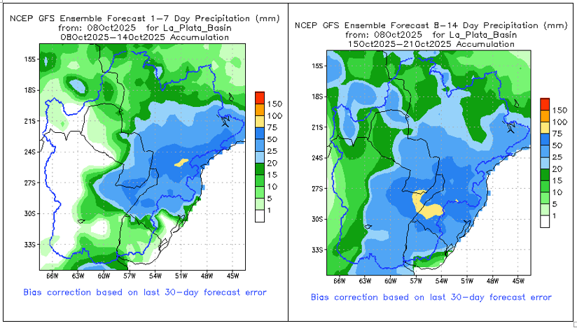 El pronóstico Hidrometeorológico del Centro Climático de referencia indica una tendencia semanal de poca significancia hidrológica en la cuenca de interés para la CHY con dispersión geográfica según sea la fuente consultada. (Ver gráfico Nro. 1).