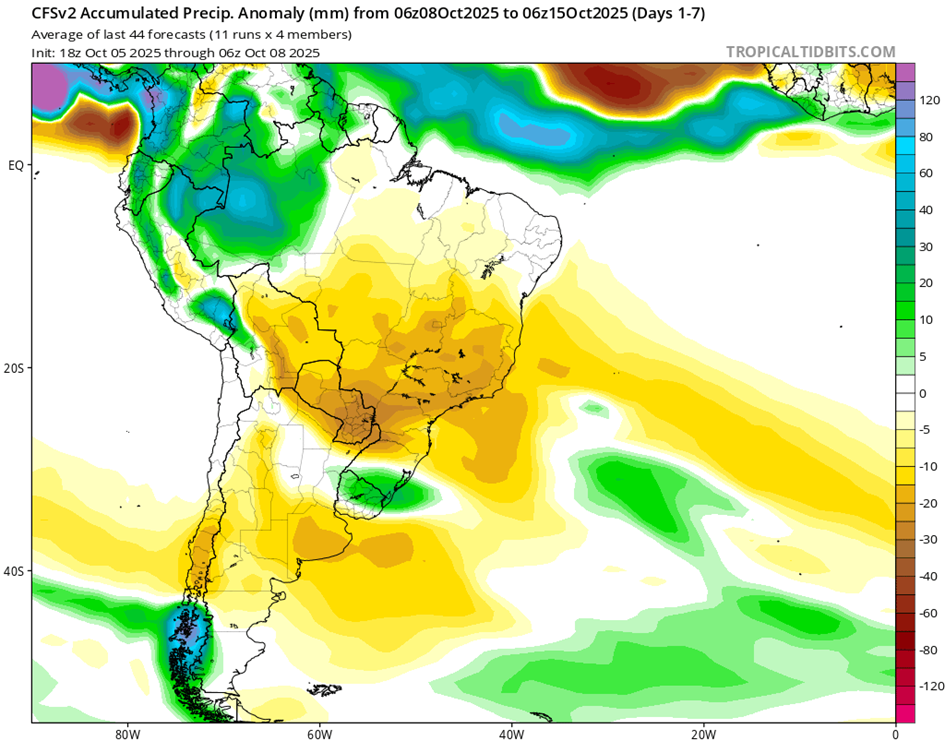 El fenómeno de El Niño-Oscilación del Sur (ENOS) se mantiene neutral. El último valor de Niño3.4 para la semana que finalizó el 24 de agosto es de -0,28 °C. Los valores neutrales de ENOS para Niño3.4 se encuentran entre -0,8 °C y +0,8 °C. Si bien las aguas subsuperficiales del Pacífico tropical han mostrado signos de enfriamiento en las últimas semanas, los indicadores atmosféricos se mantienen mayormente neutrales.