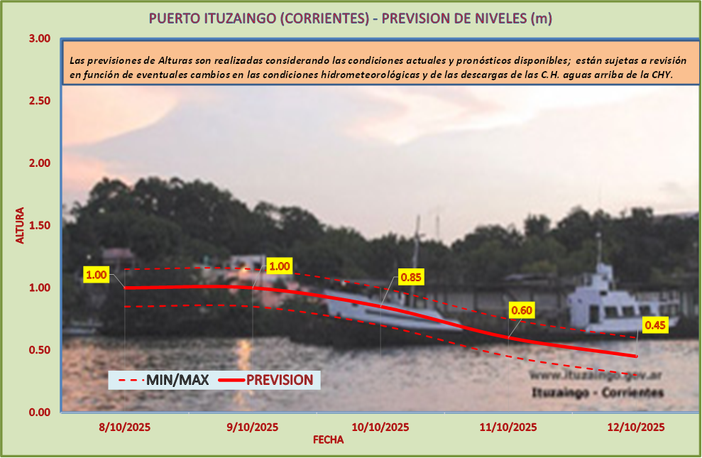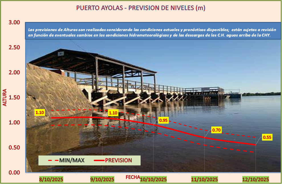 Las previsiones de Alturas son realizadas considerando las condiciones actuales y pronósticos disponibles y están sujetas a revisión en función de eventuales cambios en las condiciones hidrometeorológicas y de las descargas de las C.H. aguas arriba de la CHY.