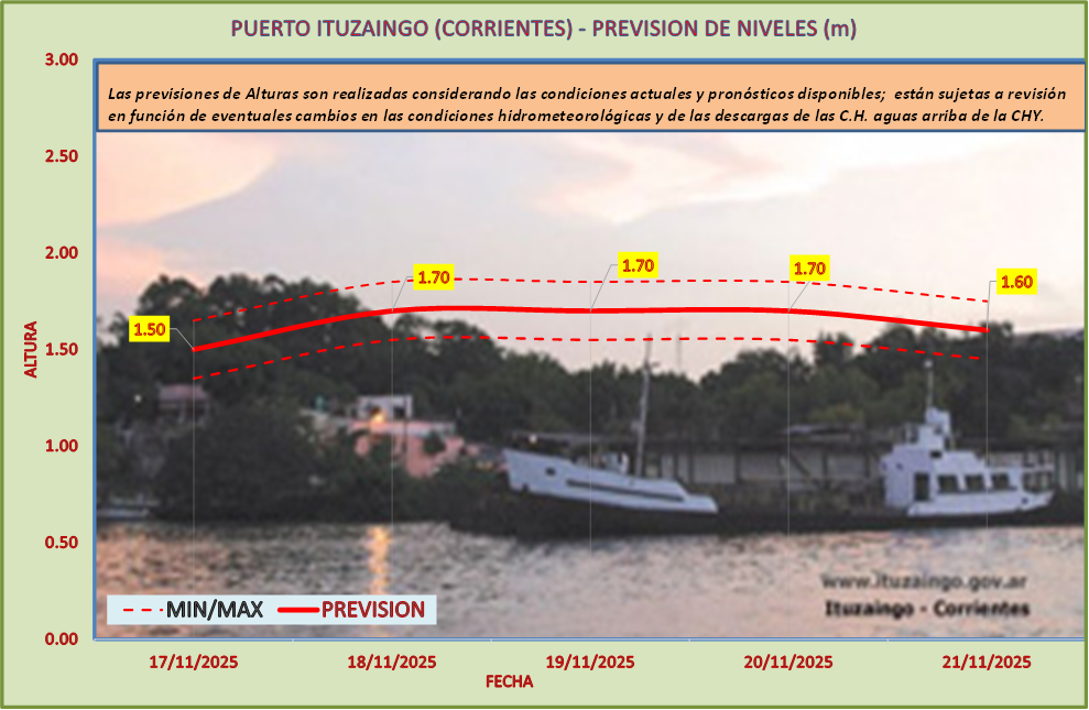 Las previsiones de Alturas son realizadas considerando las condiciones actuales y pronósticos disponibles y están sujetas a revisión en función de eventuales cambios en las condiciones hidrometeorológicas y de las descargas de las C.H. aguas arriba de la CHY.