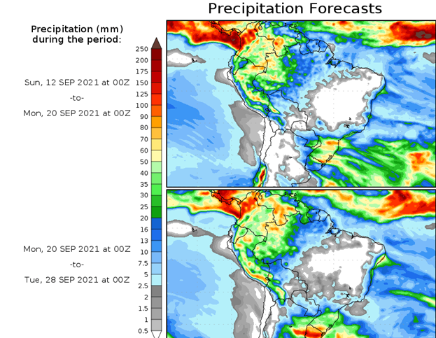 El pronóstico Hidrometeorológico del Centro Climático de referencia indica una tendencia semanal de poca significancia hidrológica en la cuenca de interés para la CHY con dispersión geográfica según sea la fuente consultada. (Ver gráfico Nro. 1).