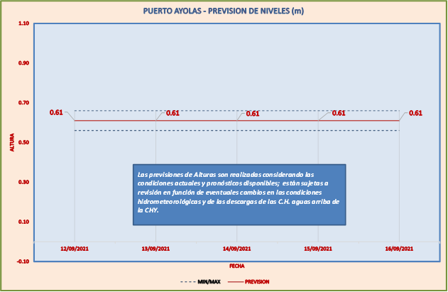 Las previsiones de Alturas son realizadas considerando las condiciones actuales y pronósticos disponibles y están sujetas a revisión en función de eventuales cambios en las condiciones hidrometeorológicas y de las descargas de las C.H. aguas arriba de la CHY.