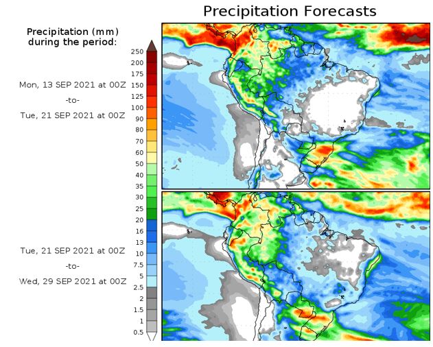 El pronóstico Hidrometeorológico del Centro Climático de referencia indica una tendencia semanal de poca significancia hidrológica en la cuenca de interés para la CHY con dispersión geográfica según sea la fuente consultada. (Ver gráfico Nro. 1).