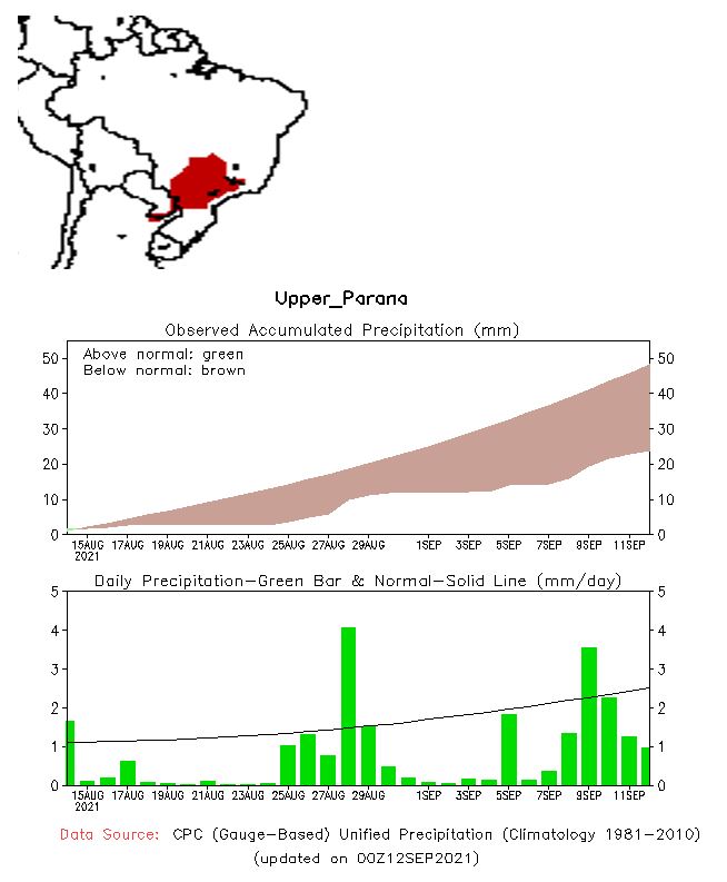 Los embalses de acumulación del Brasil que se ubican en la cuenca alta del río Paraná, aguas arriba de la Central Hidroeléctrica de Yacyretá, se encuentran con volúmenes útiles y niveles muy por debajo de lo normal debido a las escasas precipitaciones registradas.