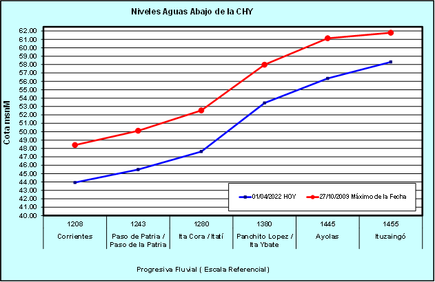 REFERENCIA: a modo de información – valores que originan riesgos de inundación en la zona de Ayolas.
