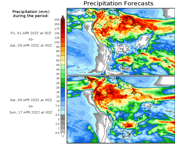 El pronóstico Hidrometeorológico del Centro Climático de referencia indica una tendencia semanal de poca significancia hidrológica en la cuenca de interés para la CHY con dispersión geográfica según sea la fuente consultada. (Ver gráfico Nro. 1).