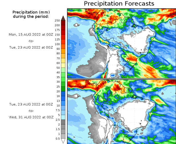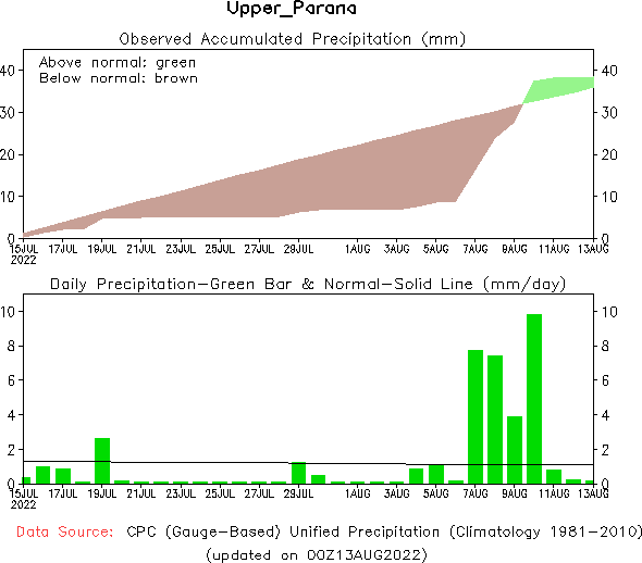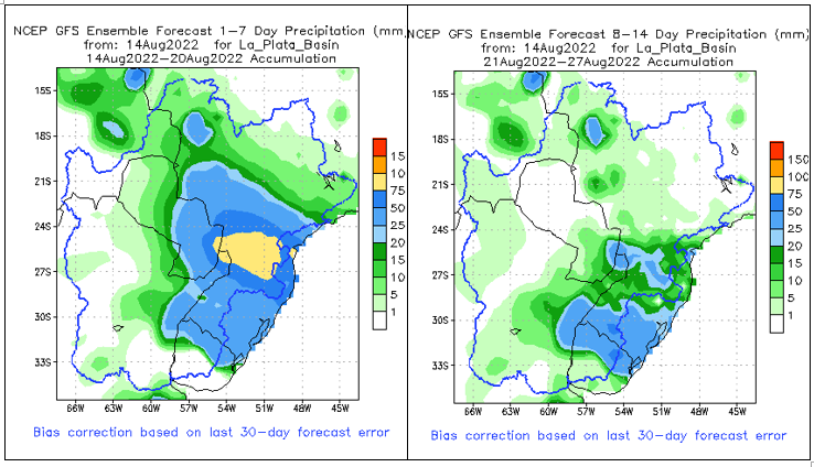 El pronóstico Hidrometeorológico del Centro Climático de referencia indica una tendencia semanal de leve significancia hidrológica en la cuenca de interés para la CHY con dispersión geográfica según sea la fuente consultada. (Ver gráfico Nro. 1).
