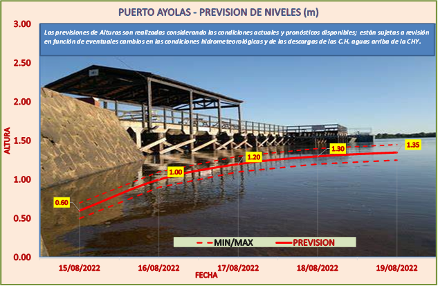 Las previsiones de Alturas son realizadas considerando las condiciones actuales y pronósticos disponibles y están sujetas a revisión en función de eventuales cambios en las condiciones hidrometeorológicas y de las descargas de las C.H. aguas arriba de la CHY.