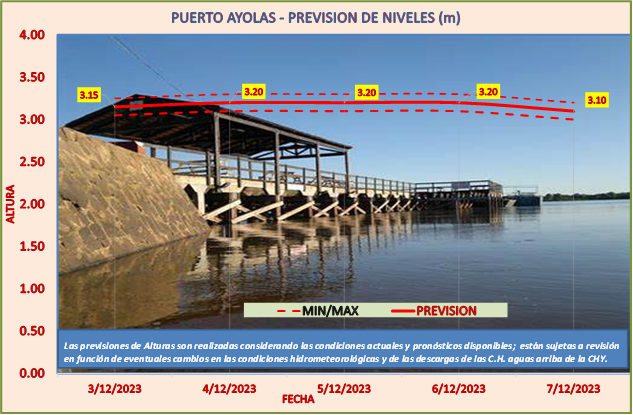 Las previsiones de Alturas son realizadas considerando las condiciones actuales y pronósticos disponibles y están sujetas a revisión en función de eventuales cambios en las condiciones hidrometeorológicas y de las descargas de las C.H. aguas arriba de la CHY.