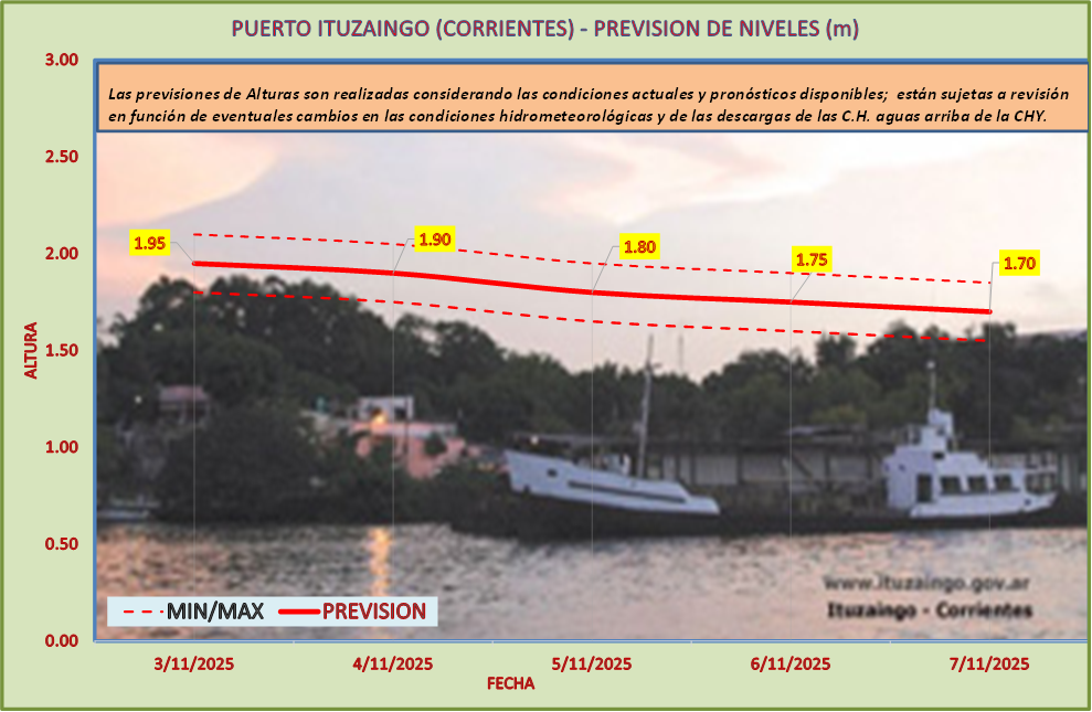 Las previsiones de Alturas son realizadas considerando las condiciones actuales y pronósticos disponibles y están sujetas a revisión en función de eventuales cambios en las condiciones hidrometeorológicas y de las descargas de las C.H. aguas arriba de la CHY.
