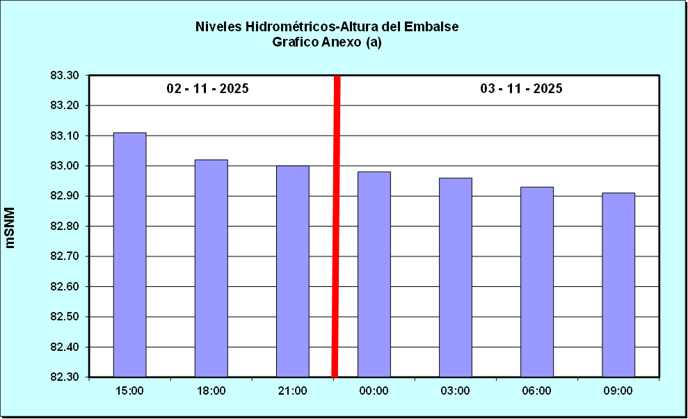 Nivel de Ayer (06:00 hs) = 83.02 mSNM Nivel de Hoy (06:00 hs) = 82.93 mSNM