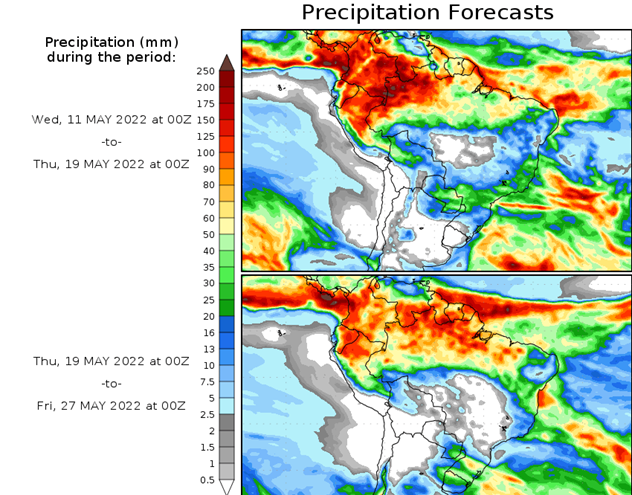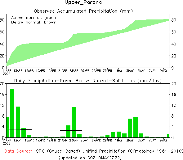 El pronóstico Hidrometeorológico del Centro Climático de referencia indica una tendencia semanal de poca significancia hidrológica en la cuenca de interés para la CHY con dispersión geográfica según sea la fuente consultada. (Ver gráfico Nro. 1).