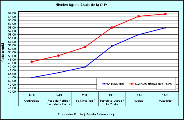 REFERENCIA: a modo de información – valores que originan riesgos de inundación en la zona de Ayolas.