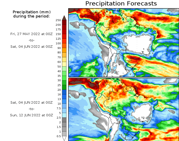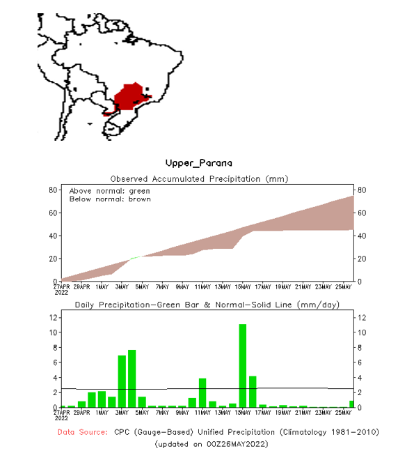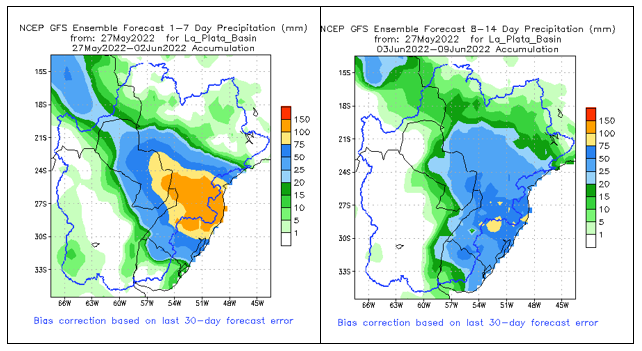 El pronóstico Hidrometeorológico del Centro Climático de referencia indica una tendencia semanal de leve significancia hidrológica en la cuenca de interés para la CHY con dispersión geográfica según sea la fuente consultada. (Ver gráfico Nro. 1).