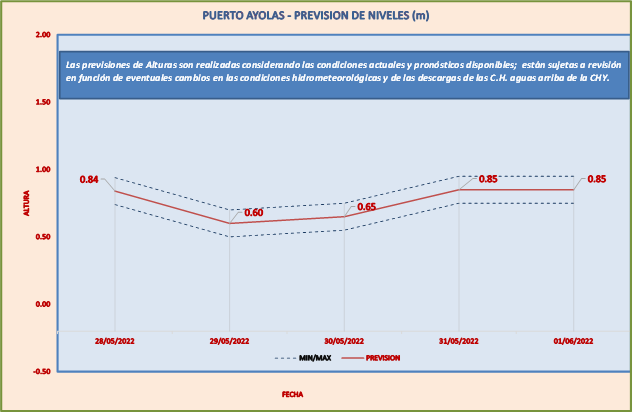Las previsiones de Alturas son realizadas considerando las condiciones actuales y pronósticos disponibles y están sujetas a revisión en función de eventuales cambios en las condiciones hidrometeorológicas y de las descargas de las C.H. aguas arriba de la CHY.