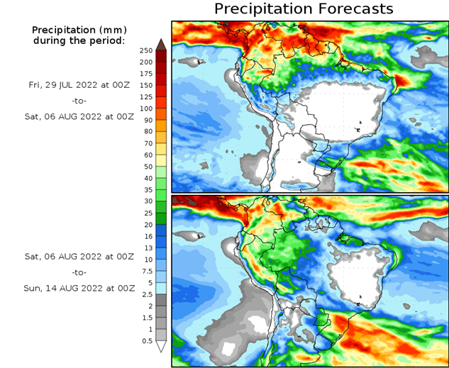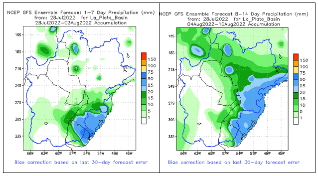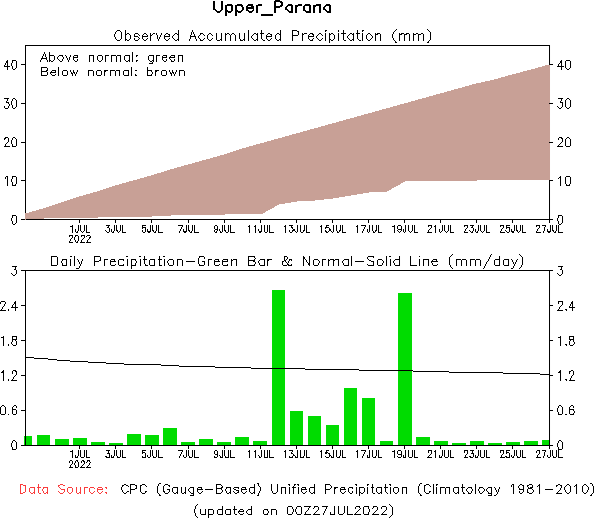 El pronóstico Hidrometeorológico del Centro Climático de referencia indica una tendencia semanal de poca significancia hidrológica en la cuenca de interés para la CHY con dispersión geográfica según sea la fuente consultada. (Ver gráfico Nro. 1).