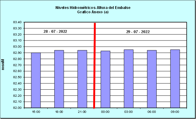 Nivel de Ayer (06:00 hs) = 82.99 mSNM Nivel de Hoy (06:00 hs) = 82.94 Msnm