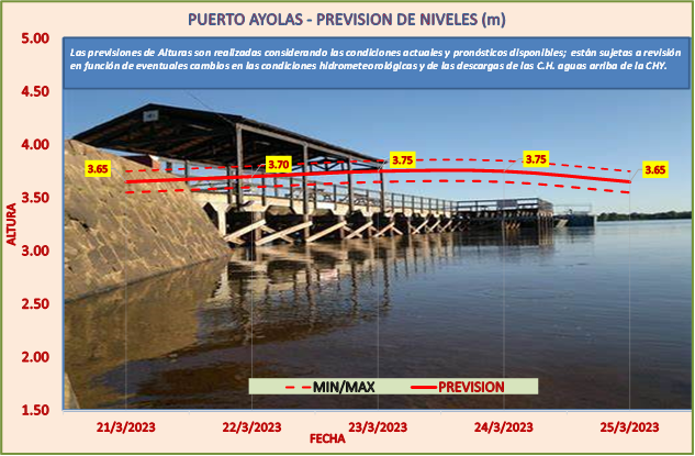 Las previsiones de Alturas son realizadas considerando las condiciones actuales y pronósticos disponibles y están sujetas a revisión en función de eventuales cambios en las condiciones hidrometeorológicas y de las descargas de las C.H. aguas arriba de la CHY.