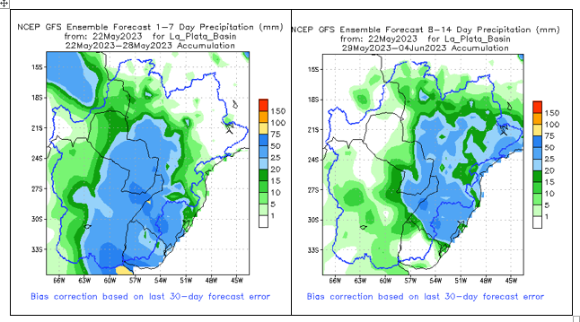 El pronóstico Hidrometeorológico del Centro Climático de referencia indica una tendencia semanal de poca significancia hidrológica en la cuenca de interés para la CHY con dispersión geográfica según sea la fuente consultada. (Ver gráfico Nro. 1).