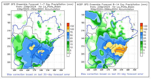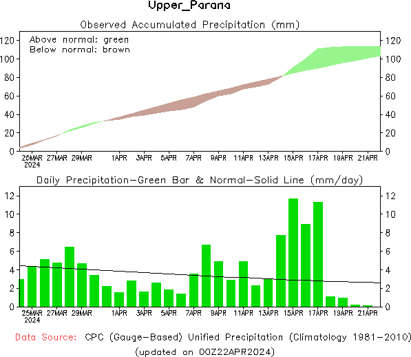 El pronóstico Hidrometeorológico del Centro Climático de referencia indica una tendencia semanal de leve significancia hidrológica en la cuenca de interés para la CHY con dispersión geográfica según sea la fuente consultada. (Ver gráfico Nro. 1).