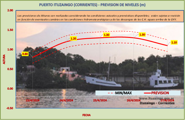 Las previsiones de Alturas son realizadas considerando las condiciones actuales y pronósticos disponibles y están sujetas a revisión en función de eventuales cambios en las condiciones hidrometeorológicas y de las descargas de las C.H. aguas arriba de la CHY.