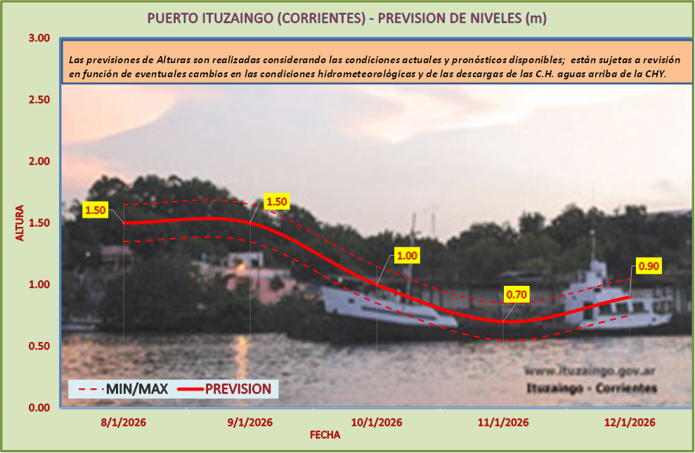 Las previsiones de Alturas son realizadas considerando las condiciones actuales y pronósticos disponibles y están sujetas a revisión en función de eventuales cambios en las condiciones hidrometeorológicas y de las descargas de las C.H. aguas arriba de la CHY.