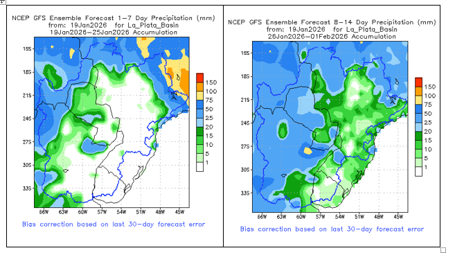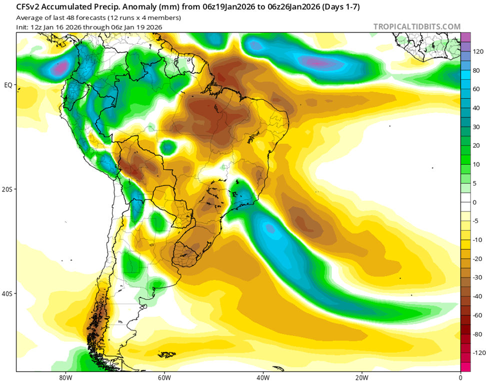 • El índice del Modo Anular Sur (SAM) se mantiene neutral al 3 de enero de 2026. Se prevé que se mantenga prácticamente neutral durante las próximas dos semanas. Posteriormente, existen diversos resultados posibles, lo que implica una menor claridad en la probable fase del SAM.