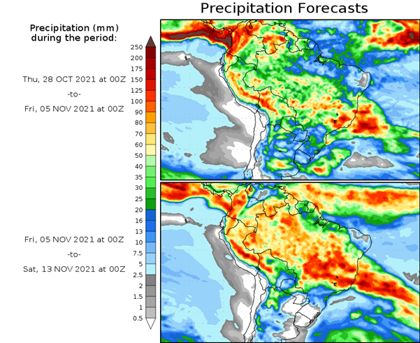 El pronóstico Hidrometeorológico del Centro Climático de referencia indica una tendencia semanal de poca significancia hidrológica en la cuenca de interés para la CHY con dispersión geográfica según sea la fuente consultada. (Ver gráfico Nro. 1).