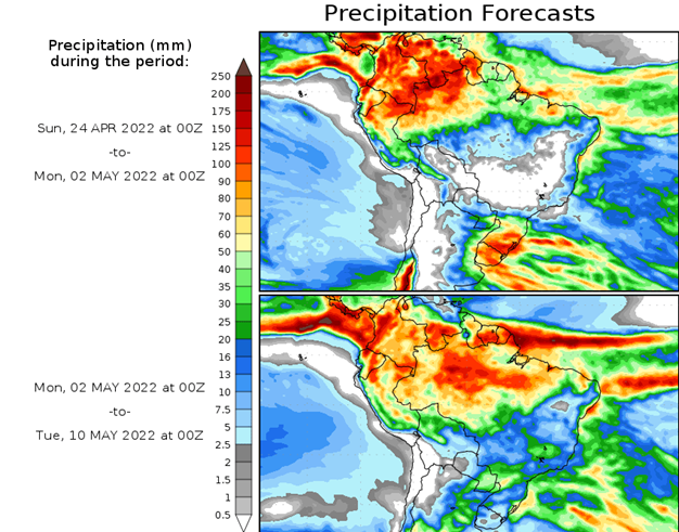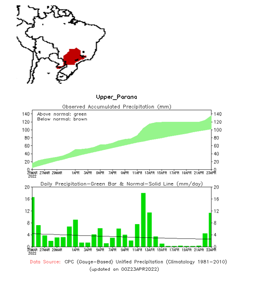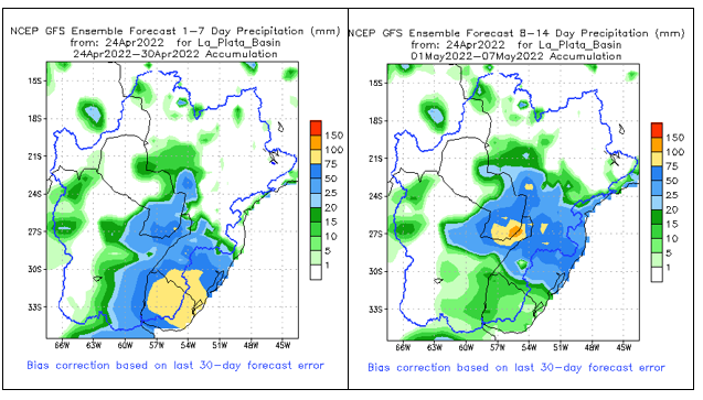 El pronóstico Hidrometeorológico del Centro Climático de referencia indica una tendencia semanal de poca significancia hidrológica en la cuenca de interés para la CHY con dispersión geográfica según sea la fuente consultada. (Ver gráfico Nro. 1).
