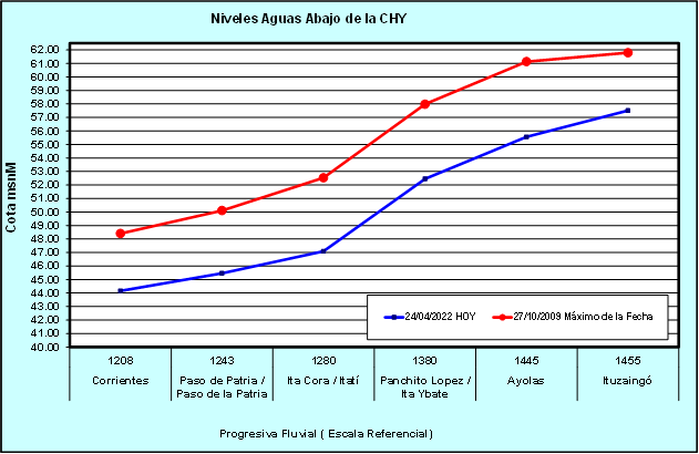 REFERENCIA: A modo de información – valores que originan riesgos de inundación en la zona de Ayolas.