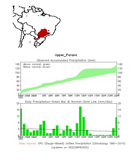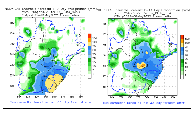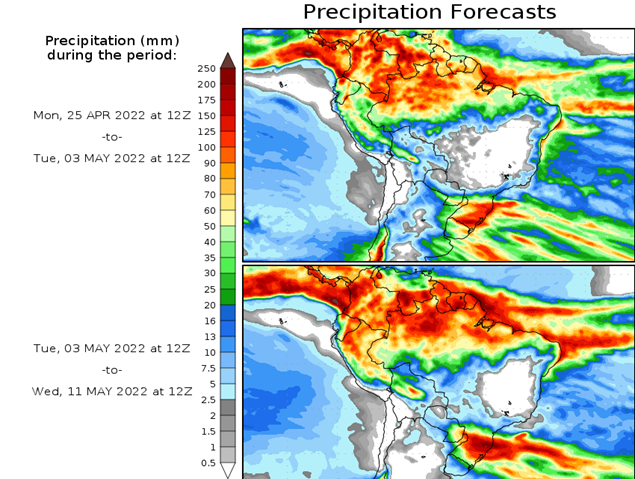 El pronóstico Hidrometeorológico del Centro Climático de referencia indica una tendencia semanal de poca significancia hidrológica en la cuenca de interés para la CHY con dispersión geográfica según sea la fuente consultada. (Ver gráfico Nro. 1).