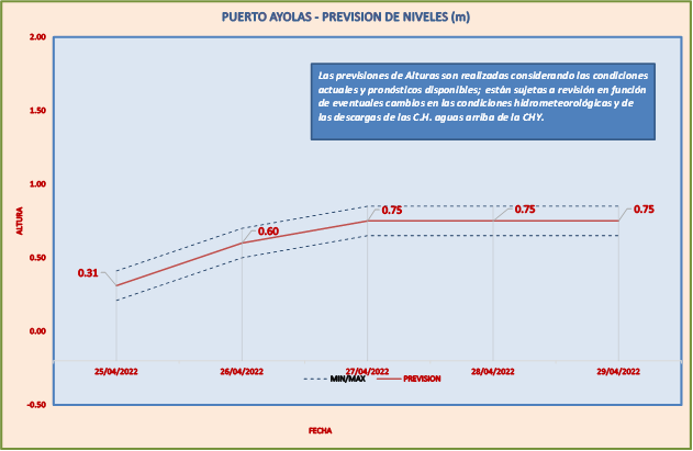 Las previsiones de Alturas son realizadas considerando las condiciones actuales y pronósticos disponibles y están sujetas a revisión en función de eventuales cambios en las condiciones hidrometeorológicas y de las descargas de las C.H. aguas arriba de la CHY.