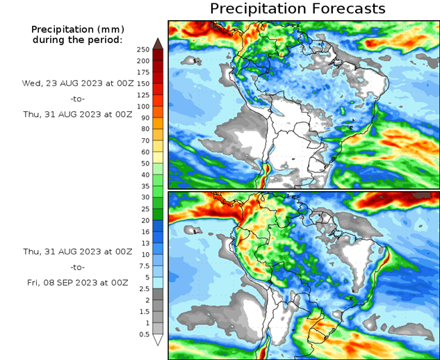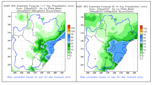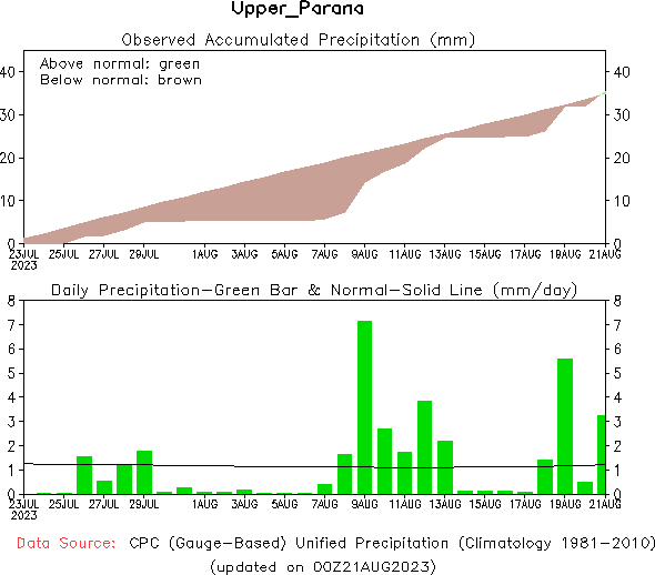 El pronóstico Hidrometeorológico del Centro Climático de referencia indica una tendencia semanal de poca significancia hidrológica en la cuenca de interés para la CHY con dispersión geográfica según sea la fuente consultada. (Ver gráfico Nro. 1).