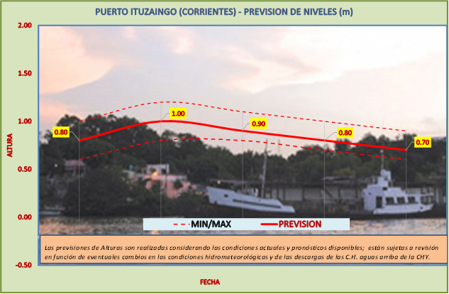 Las previsiones de Alturas son realizadas considerando las condiciones actuales y pronósticos disponibles y están sujetas a revisión en función de eventuales cambios en las condiciones hidrometeorológicas y de las descargas de las C.H. aguas arriba de la CHY.