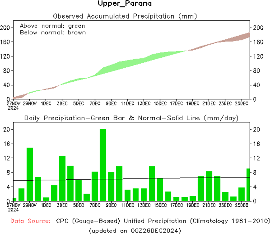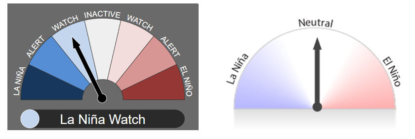 El fenómeno de El Niño-Oscilación del Sur (ENSO) es neutro, y tanto las temperaturas superficiales del mar (TSM) en el Océano Pacífico ecuatorial central como los patrones atmosféricos se encuentran en niveles neutros respecto de El Niño. Los índices atmosféricos, como los relacionados con los patrones de presión superficial, nubes y vientos alisios, son en general consistentes con un estado neutro respecto de El Niño. Aunque algunos han mostrado señales similares a las de La Niña durante las últimas semanas, estas señales no han sido consistentes.