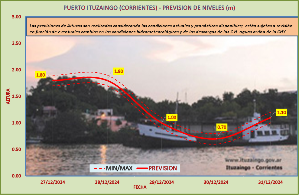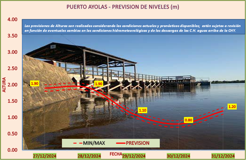 Las previsiones de Alturas son realizadas considerando las condiciones actuales y pronósticos disponibles y están sujetas a revisión en función de eventuales cambios en las condiciones hidrometeorológicas y de las descargas de las C.H. aguas arriba de la CHY.
