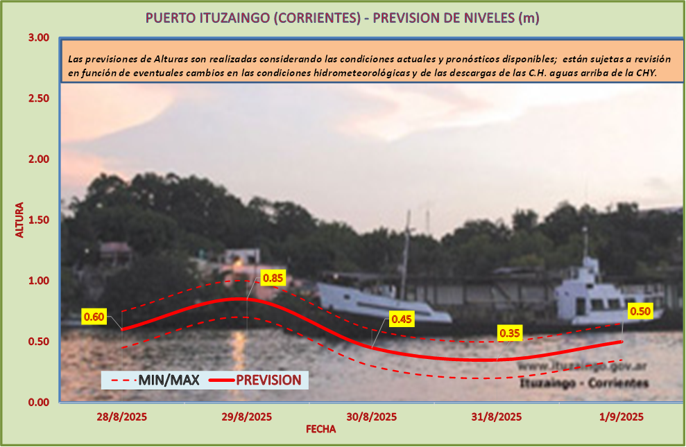 Las previsiones de Alturas son realizadas considerando las condiciones actuales y pronósticos disponibles y están sujetas a revisión en función de eventuales cambios en las condiciones hidrometeorológicas y de las descargas de las C.H. aguas arriba de la CHY.