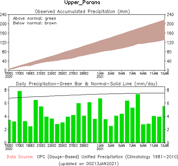 El pronóstico Hidrometeorológico del Centro Climático de referencia indica una tendencia semanal de leve significancia hidrológica en la cuenca de interés para la CHY con dispersión geográfica según sea la fuente consultada. (Ver gráfico Nro. 1).