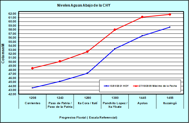REFERENCIA: a modo de información – valores que originan riesgos de inundación en la zona de Ayolas.