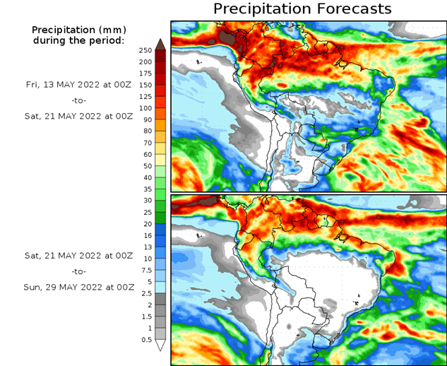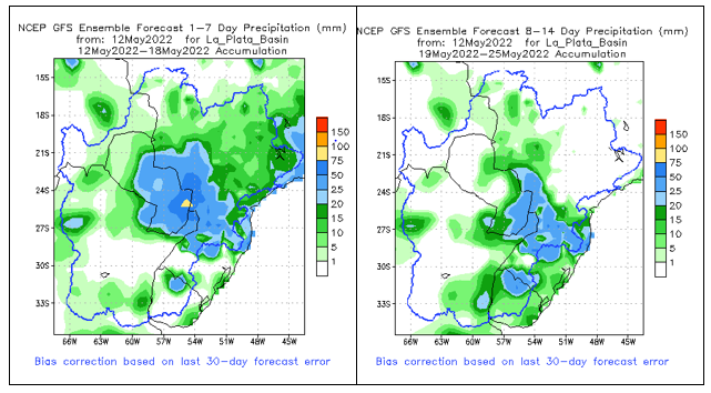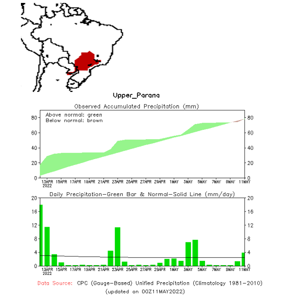 El pronóstico Hidrometeorológico del Centro Climático de referencia indica una tendencia semanal de poca significancia hidrológica en la cuenca de interés para la CHY con dispersión geográfica según sea la fuente consultada. (Ver gráfico Nro. 1).