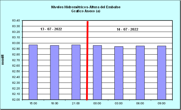Nivel de Ayer (06:00 hs) = 82.99 mSNM Nivel de Hoy (06:00 hs) = 82.96 mSNMVer gráfico Anexo (a)