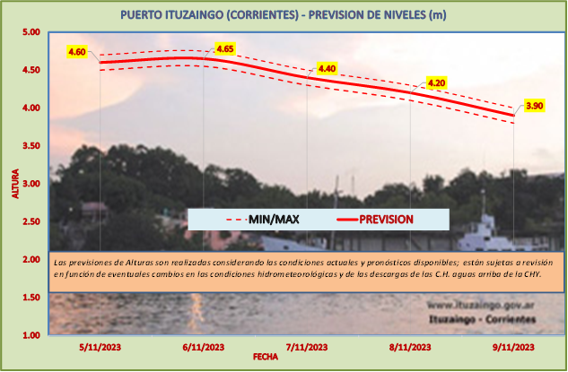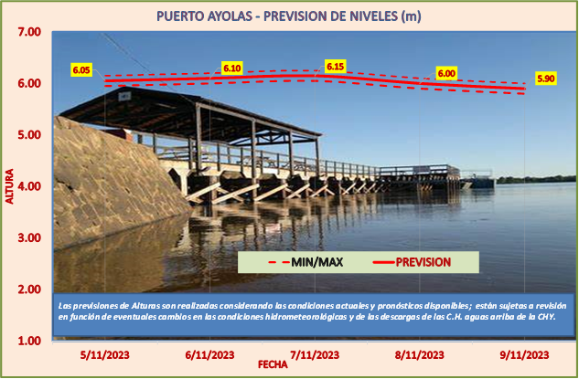 Las previsiones de Alturas son realizadas considerando las condiciones actuales y pronósticos disponibles y están sujetas a revisión en función de eventuales cambios en las condiciones hidrometeorológicas y de las descargas de las C.H. aguas arriba de la CHY.