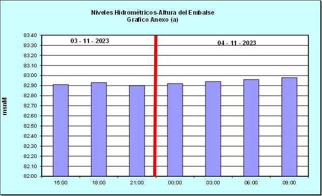 Nivel de Ayer (06:00 hs) = 82.85 mSNM Nivel de Hoy (06:00 hs) = 82.96 mSNM