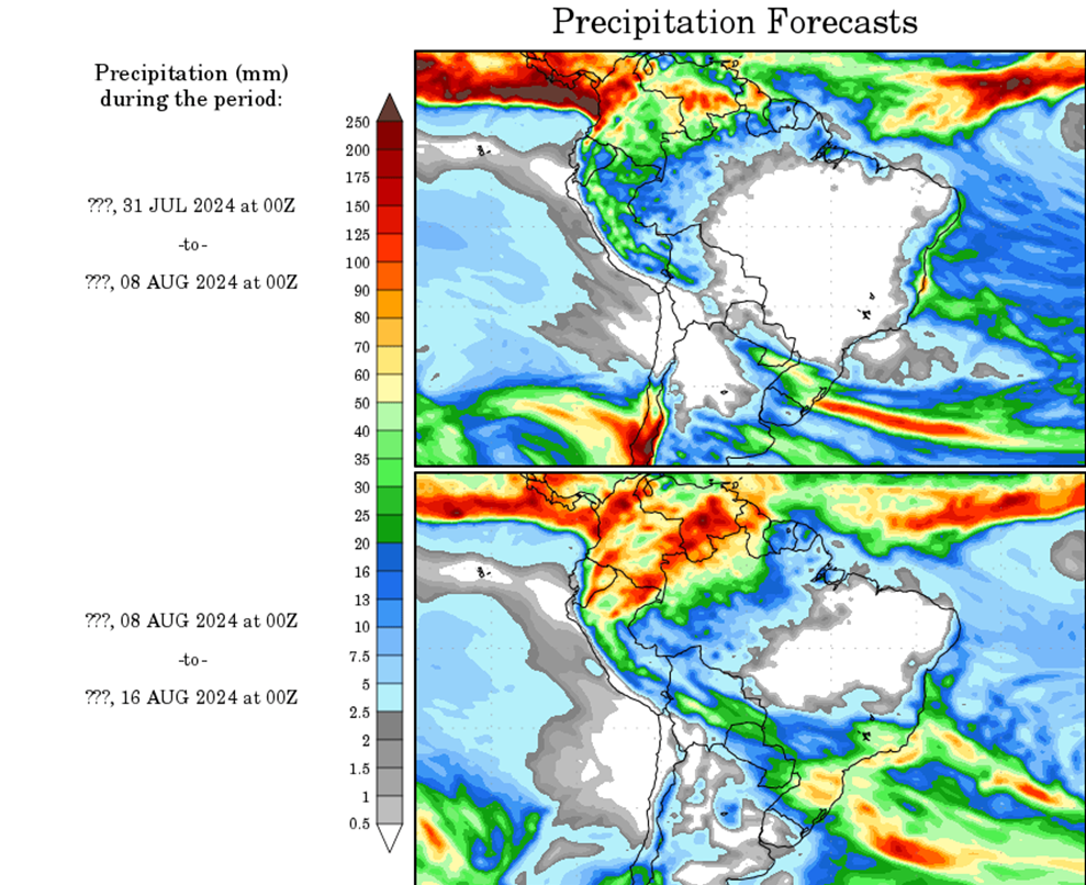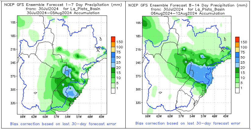 El pronóstico Hidrometeorológico del Centro Climático de referencia indica una tendencia semanal de poca significancia hidrológica en la cuenca de interés para la CHY con dispersión geográfica según sea la fuente consultada. (Ver gráfico Nro. 1).