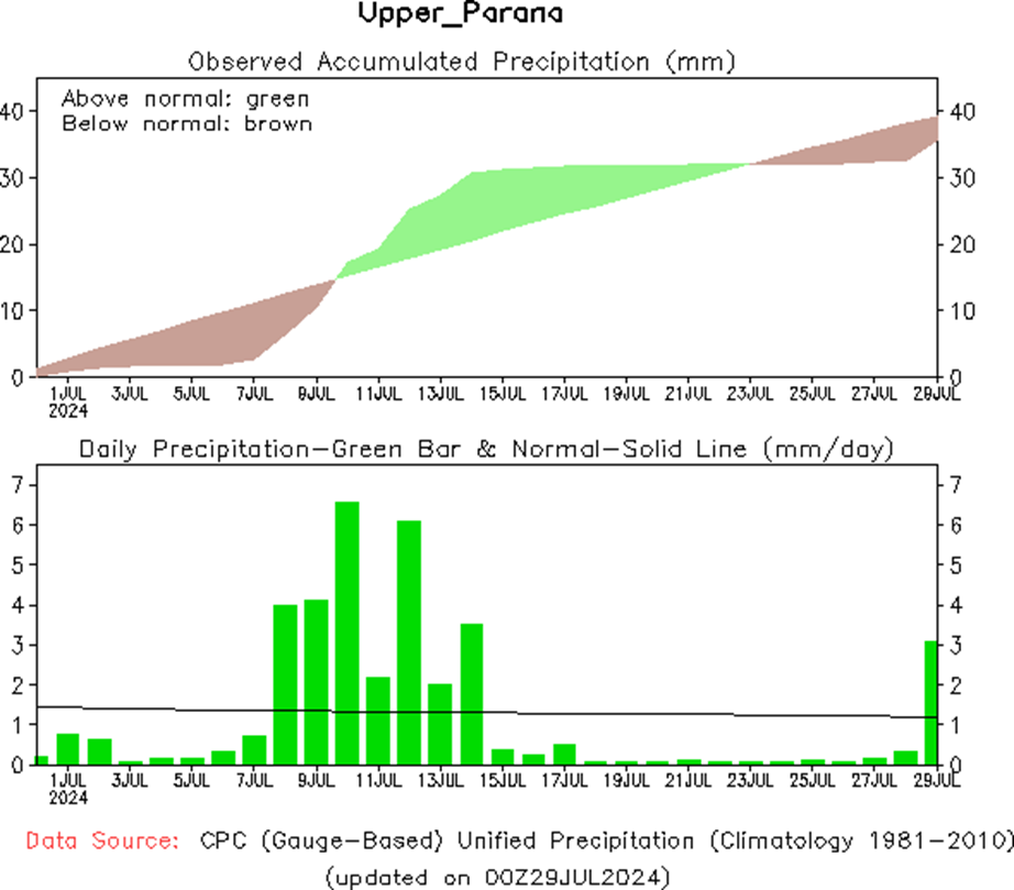En el Puerto de Ayolas se registró una altura de 0.78 m, mientras que se espera que los niveles acompañen la tendencia de los caudales.